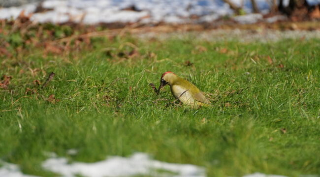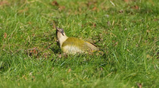 Deze specht gaan we meestal tegenkomen op de grond en in het gras , op zoek naar mieren en andere kleine insecten. Hij kan hiervoor behoorlijk diep gaan graven. Een gat van een halve meter diep is niet uitzonderlijk. Neem daarbij een kleverige tong die gemakkelijk 10 cm kan zijn en dan beseffen dat er weinig insecten in de bodem veilig zijn voor de groene specht.