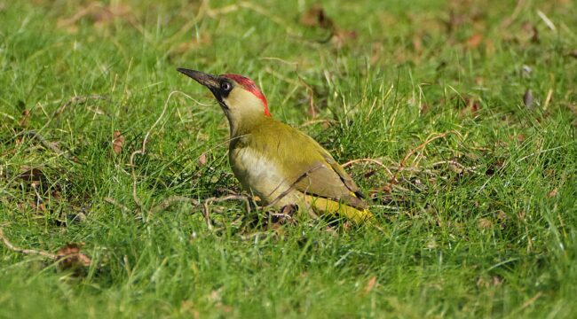 Een groene specht ga je niet zo dikwijls spotten maar de rode kruin en de zwarte vlek zijn weliswaar opvallend, waardoor hij dikwijls zijn aanwezigheid verraadt. Het is telkens een mooie verschijning, zeker wanneer hij actief bezig is met het zoeken naar voedsel.
